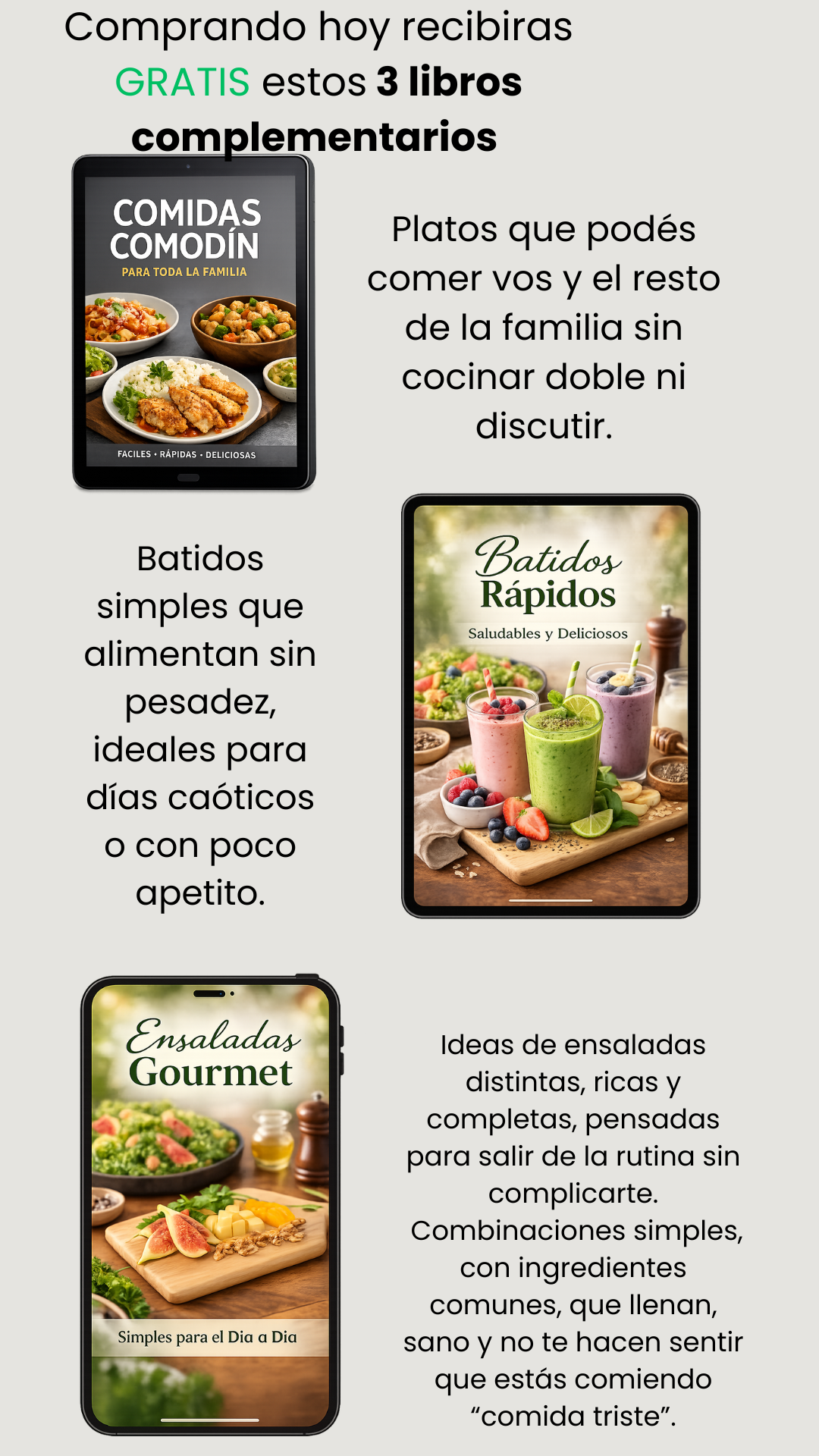 Incluye recetas saludables, rápidas y fáciles, pensadas para el día a día, más hábitos simples para sostener una alimentación más consciente sin complicaciones.